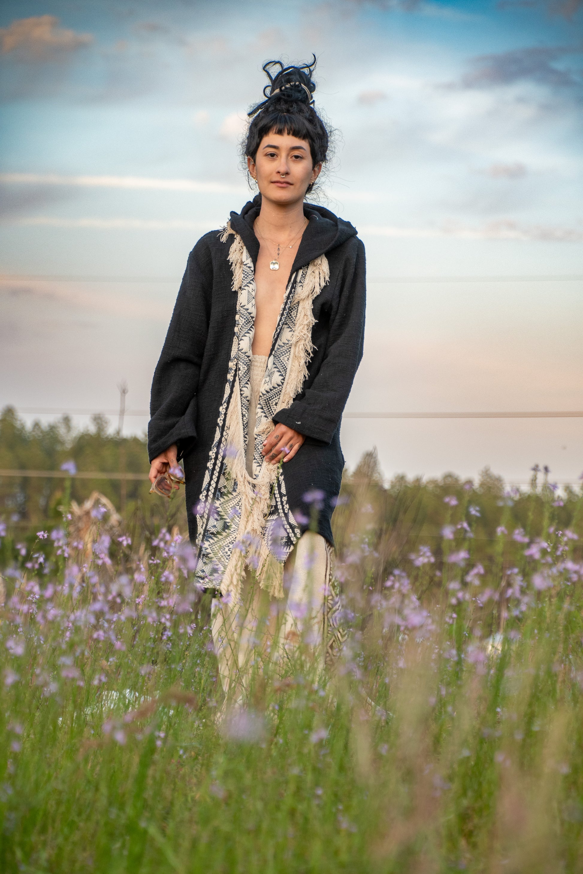 A celebration in every stitch, the Festival Jacket is made for those who move to the rhythm of their own spirit. Woven from breathable natural fibers, this statement piece blends bold texture with effortless layering. With its free-flowing design, deep pockets, and intentional details, it wraps you in comfort while turning heads. Whether you’re dancing beneath the stars, gathering in sacred spaces, or simply expressing your everyday magic—this jacket is your trusted companion in both softness and strength.