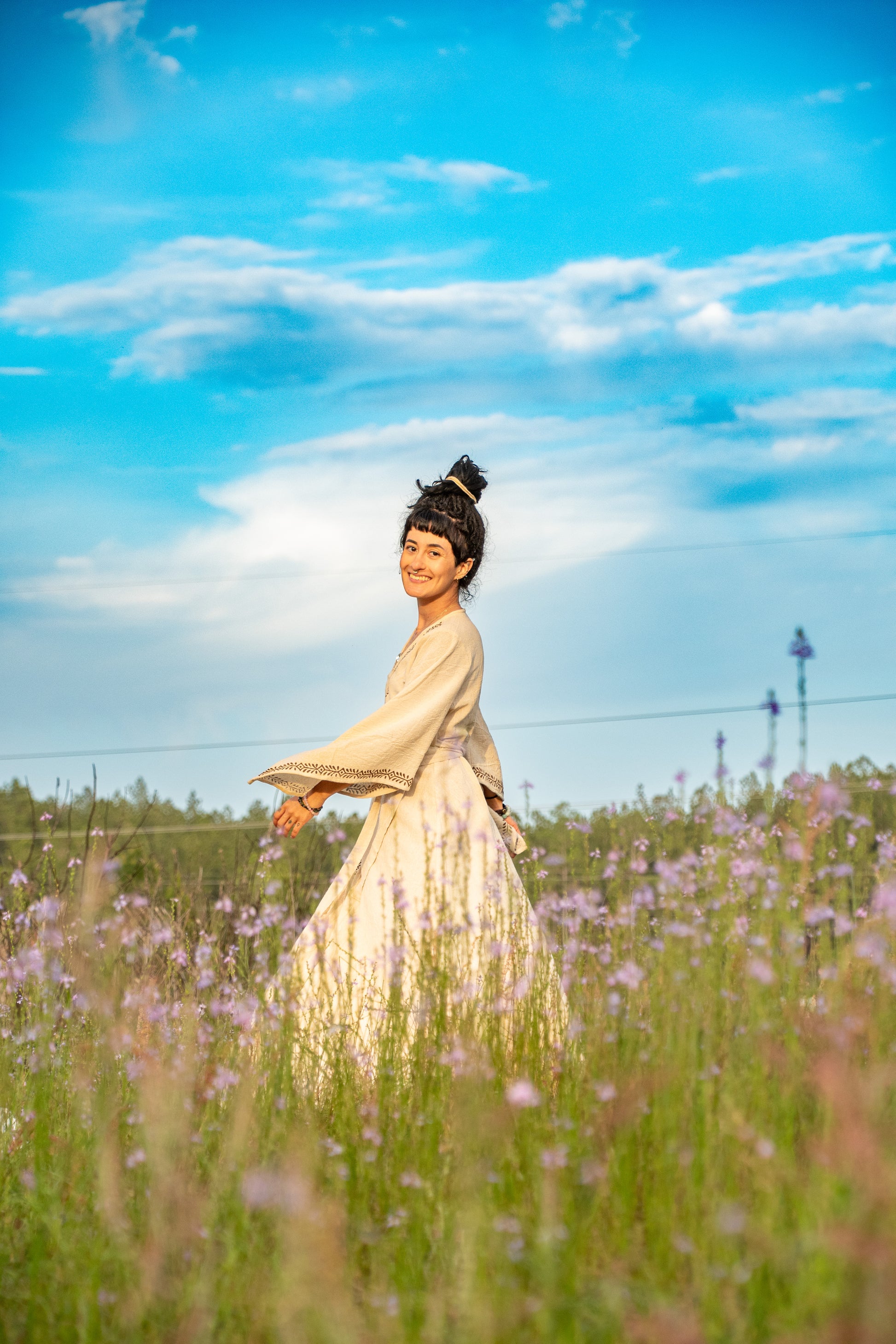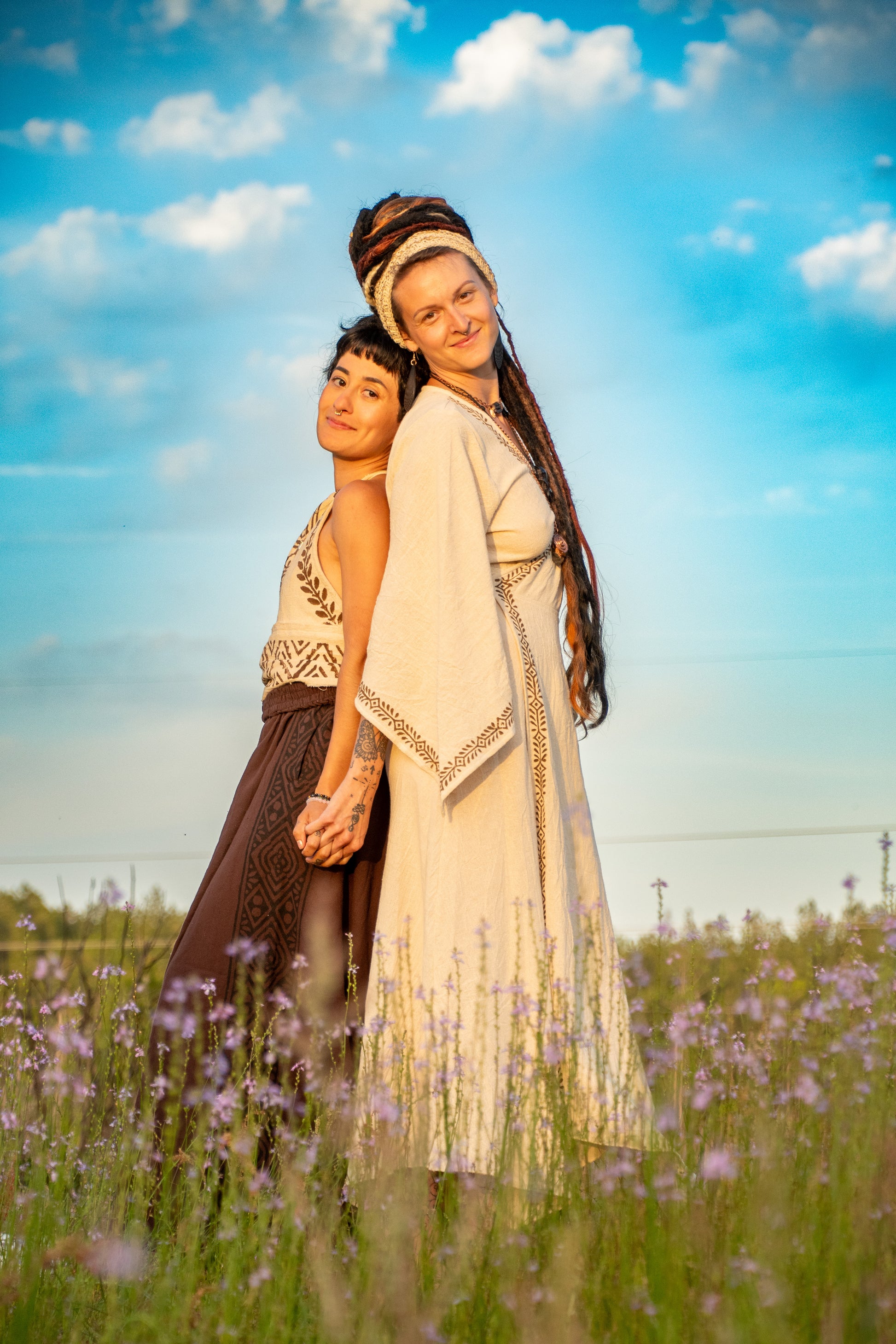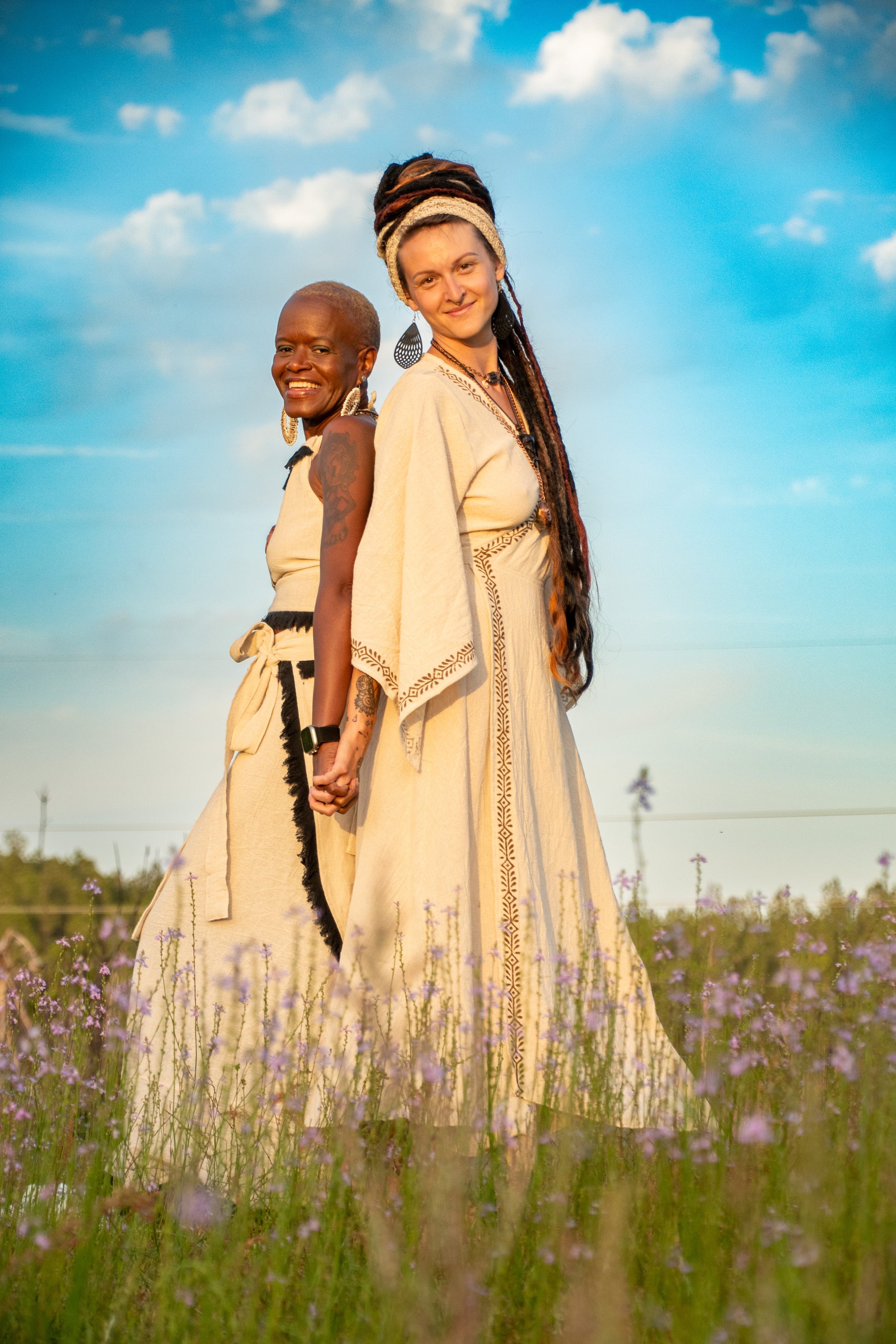 A garment of remembrance and reverence, the Priestess Dress is designed for the woman who carries wisdom in her bones and softness in her step. With flowing long sleeves and a silhouette that drapes like ritual, this piece wraps the body in elegance, ease, and quiet power.
